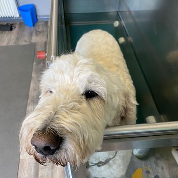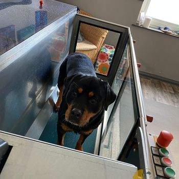 Im Sommer 2021 haben wir mit vereinten Kräften aus einem alten Gebäude eine schöne Praxis gebaut die mir jetzt viele Möglichkeiten bietet für meine Patienten in aller Form da zu sein. Mit meinem Unterwasserlaufband zum Beispiel kann ich viele Therapieformen unterstützen.