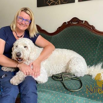 Ich wohne im schönen Nordfriesland zusammen mit meinem Mann Gunnar und meinem Golden Retriever Rüden Fred. Die Liebe zu Tieren hat schon in meiner Kindheit angefangen, wir lebten schon immer auf einem Bauernhof mit Kühen, Pferden und anderen Tieren zusammen. Der dazugehörige Hofhund selbstverständlich dabei.